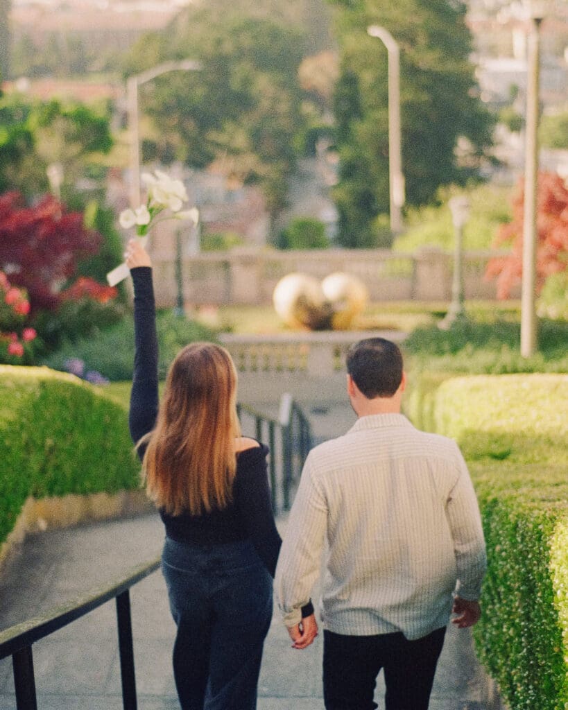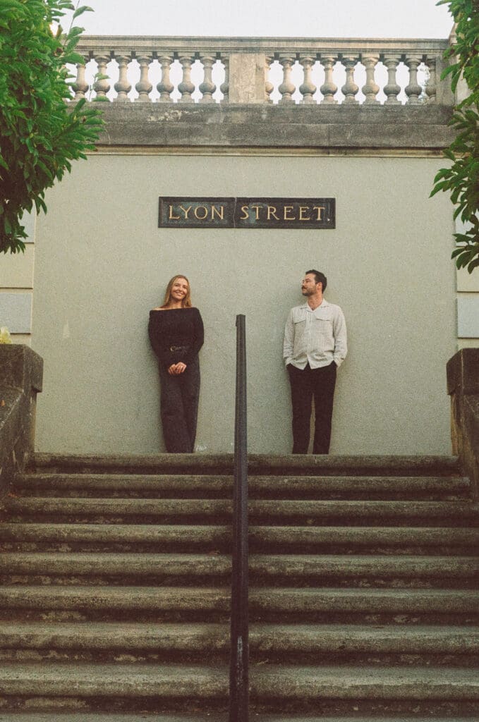On the day of, they were on time and so efficient, we shot at three different locations (including the beautiful Lyon Street Steps) all within two hours. They worked seamlessly together, capturing everything on three cameras: Super 8, film, and digital.